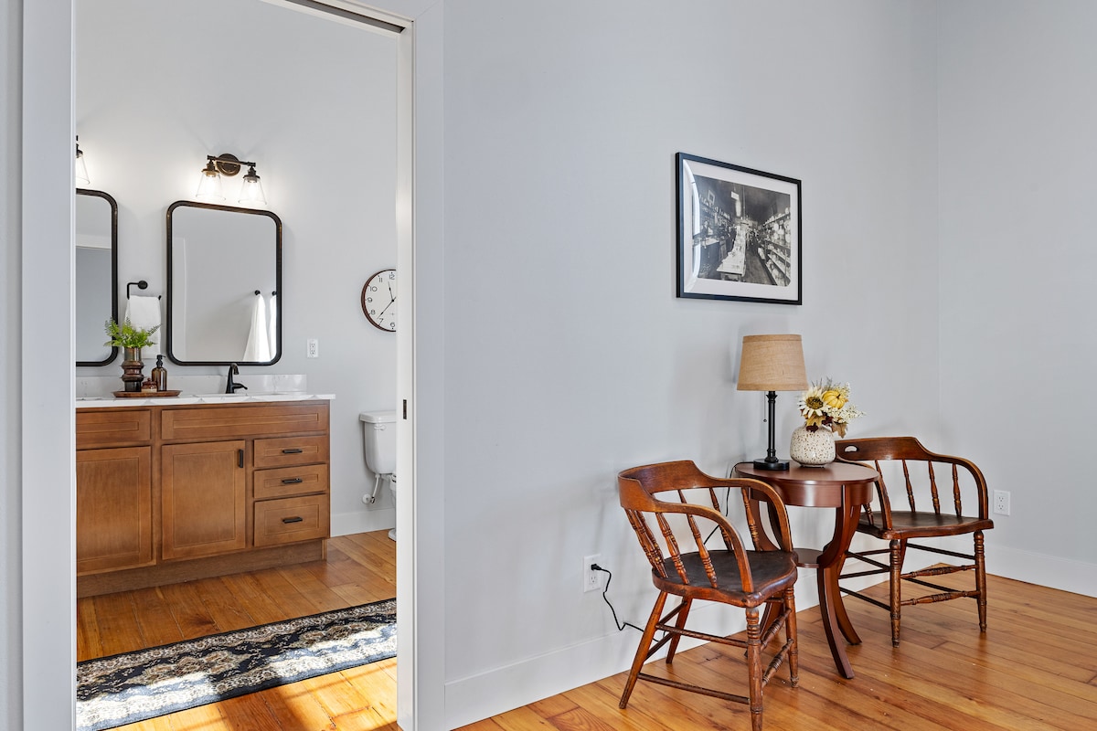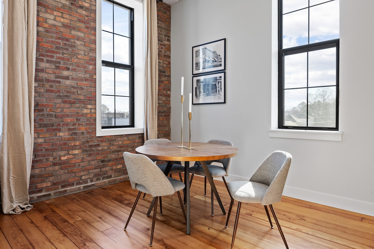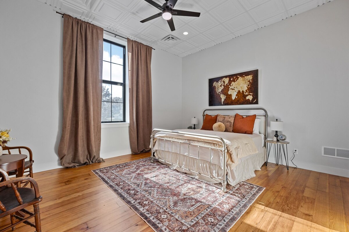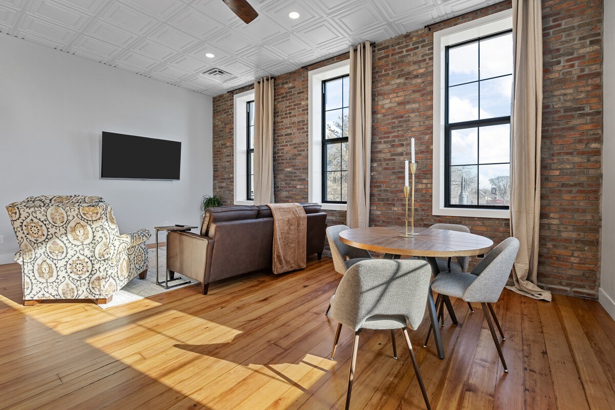 Modern + Historic Evans Suite combines "old brick charm" with modern comfort in this spacious 1300sqft unit located on the Square in Williamsburg where you'll be overlooking the bustling downtown and park.