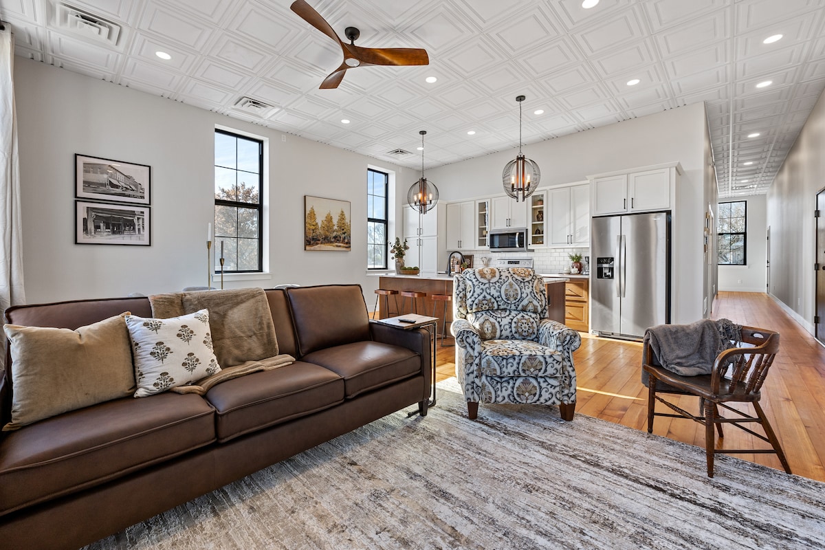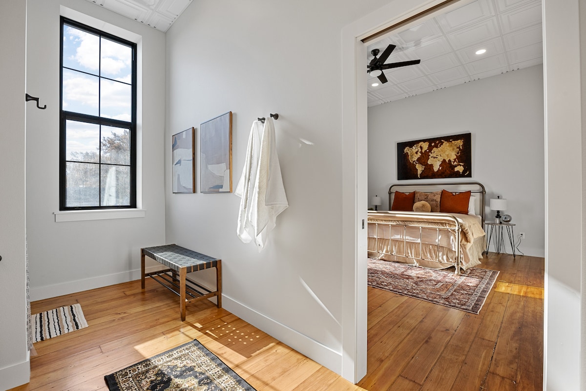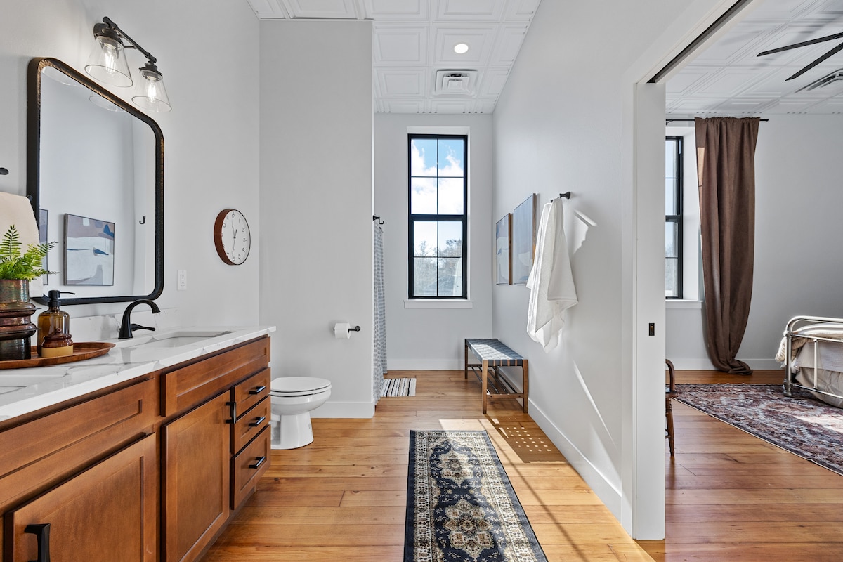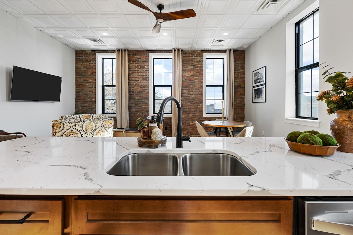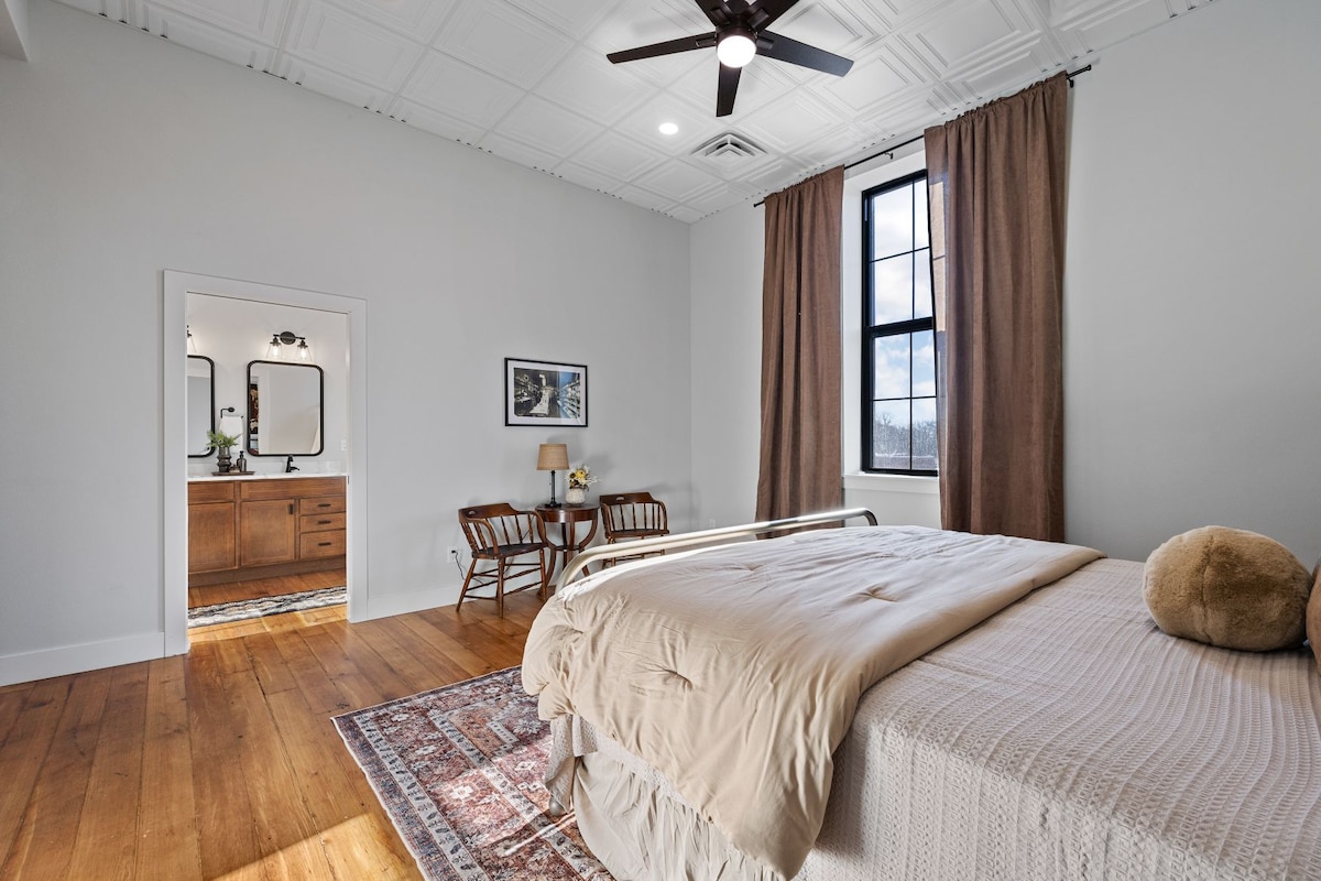 Modern + Historic Evans Suite combines "old brick charm" with modern comfort in this spacious 1300sqft unit located on the Square in Williamsburg where you'll be overlooking the bustling downtown and park.